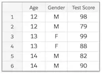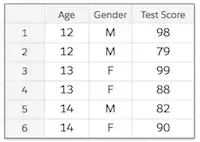 아래 A동아리 학생의 성적표 테이블은 Age와 gender가 Sample의 identifier로 사용될 수 있는 데이터이다.
