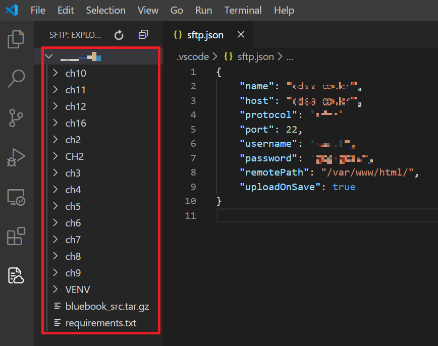 6. 저장하는 순간, 좌측 extension 목록에 sftp가 동기화됩니다.