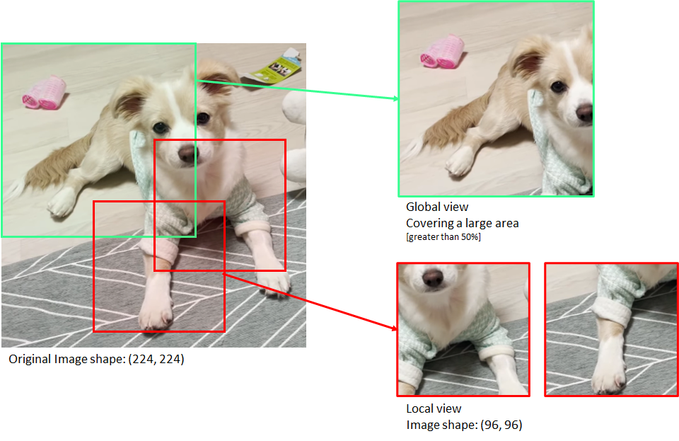 이미지에서 큰 부분 (Global view)와 작은부분 (Local view)으로 이미지를 떼어내어 준비한다.